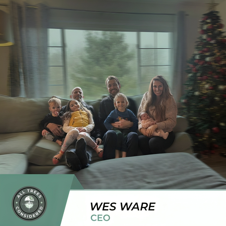 With 14 years of climbing experience as an electrical lineman, Wes brings unmatched expertise to challenging tree removals that others say require cranes. All Trees Considered started in 2022 when his wife posted on Nextdoor asking if neighbors needed trees trimmed – and the response was immediate. What began as weekend work while employed at an electric utility has grown into a 5-star rated, locally-owned tree service business built on referrals and exceptional customer service.